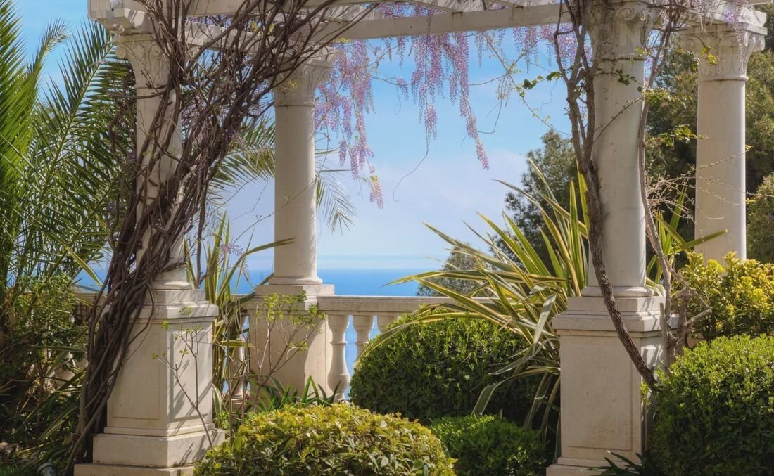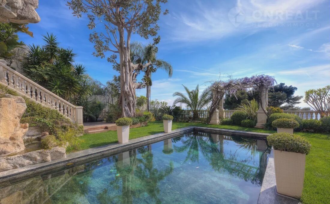 Участок 8 соток превращён в настоящий оазис: ухоженный сад, зона отдыха, крытая веранда с панорамным видом на морскую гладь и подогреваемый бассейн, которым можно наслаждаться круглый год.