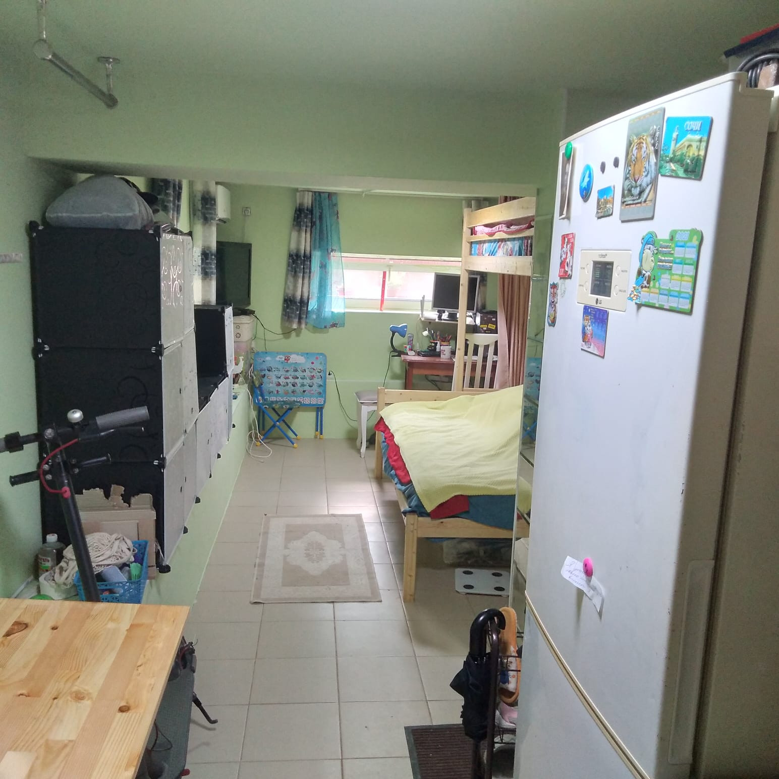 Срочно! Продам аппартаменты в многоквартирном, 3 этажном доме, на цокольном этаже, есть территория возле дома и детская площадка. Комната 17 кв., 2 окна, совмещенный санузел,  ванна большая, теплый пол, кондиционер, тен, холодильник, варочная панель, вытяжка в ванной, можно поставить на кухню вытяжку, труба проведена. На воду выделен лицевой счет. Потолки 2,1 м.