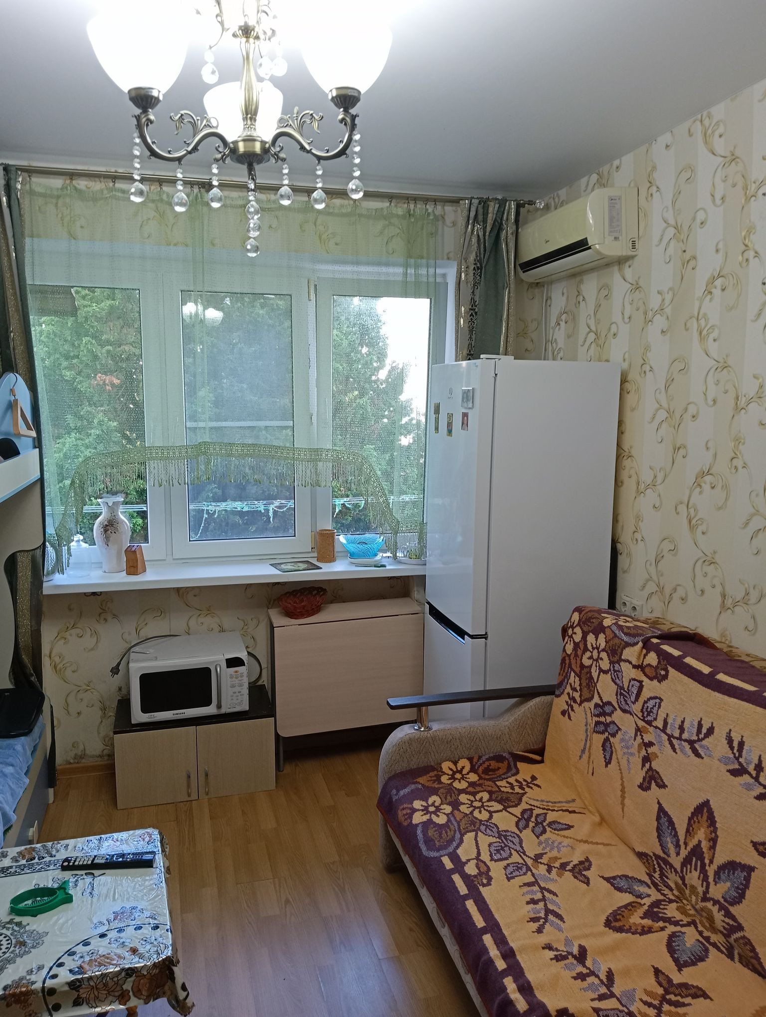 Продается комната в малосемейке с мебелью .Хороший ремонт.  Кухня, душ, туалет общие. В шаговой доступности детский сад, школа, ж/д вокзал, рынок, поликлиника. До моря 3 минуты.