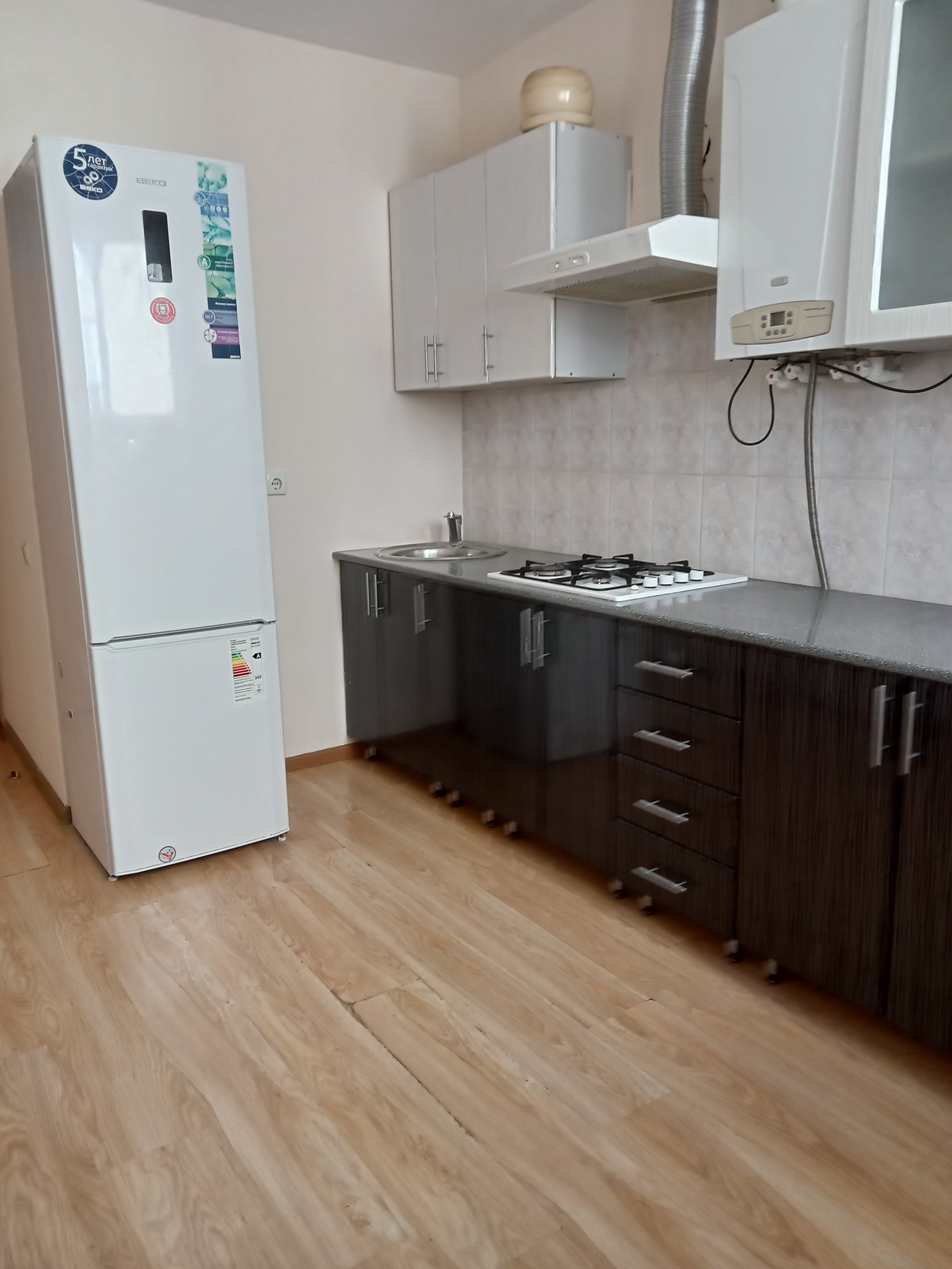 Отопление, горячая вода в квартире - индивидуальный газовый котел "Baxi", приготовление пищи - газовая плита.