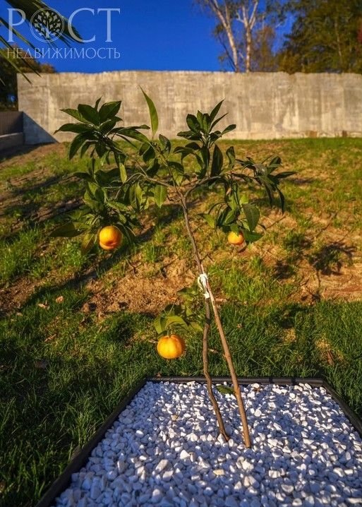 Выполнено ландшафтное озеленение и зеленый газон, посажены лимонные деревья, эвкалипт, цитрусовые деревья, фейхуа.