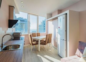 Квартира с премиальной отделкой, мебелью и техникой в ЖК бизнс-класса "Морская симфония-2". Самая лучшая планировка в комплексе: во-первых, это полноценная двухкомнатная квартира, во-вторых, из всех помещений квартиры открывается прямой панорамный вид на море. В квартире - большая полноценная спальня с панорамным остеклением, детская игровая комнат... |