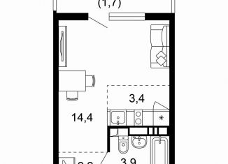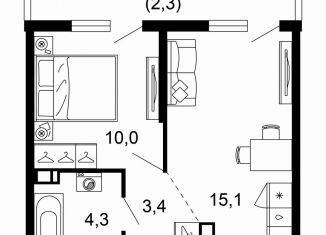 Продажа однокомнатной квартиры, 38.3 м2