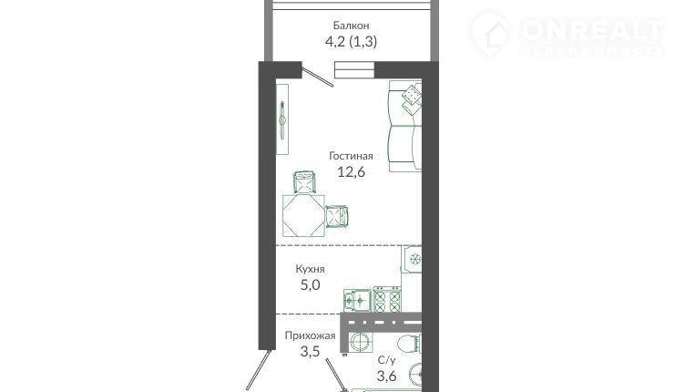 Общая площадь 26 м2