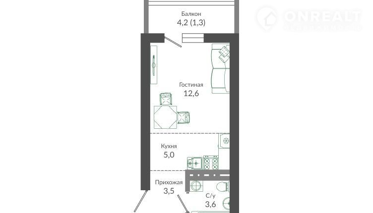 Общая площадь 26 м2