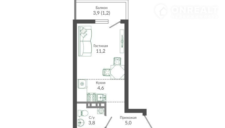 Квартира студия, 25.8 м2, этаж 11 / 12, на продажу в Сочи
