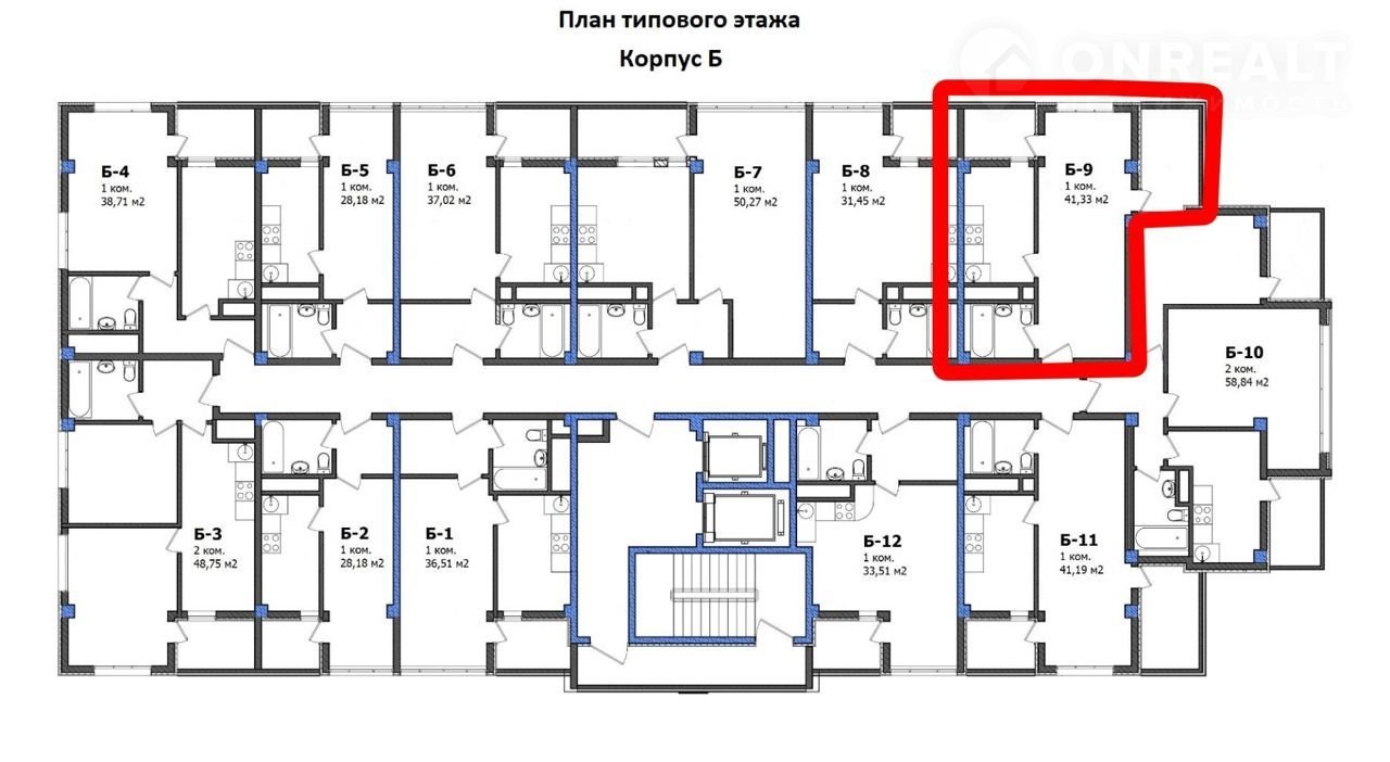 Общая площадь 41.3 м2