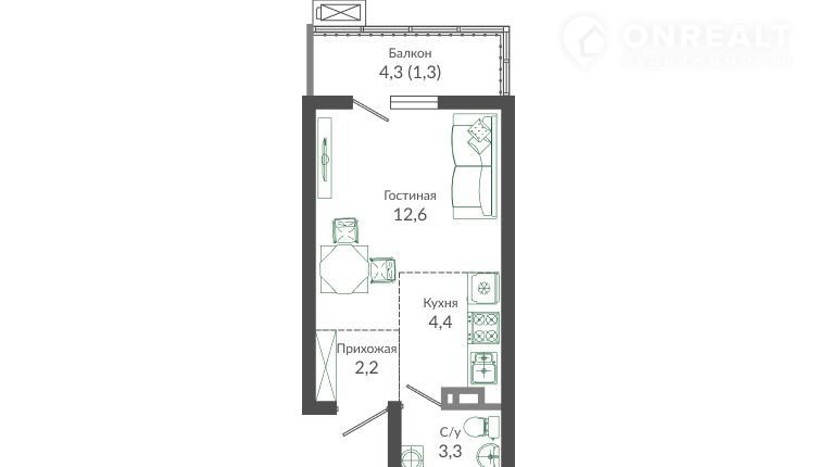Квартира студия, 23.8 м2, этаж 12 / 12, на продажу в Сочи, улица Искры, 66/9к1