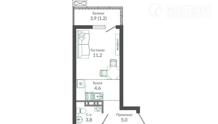 Общая площадь 25.8 м2