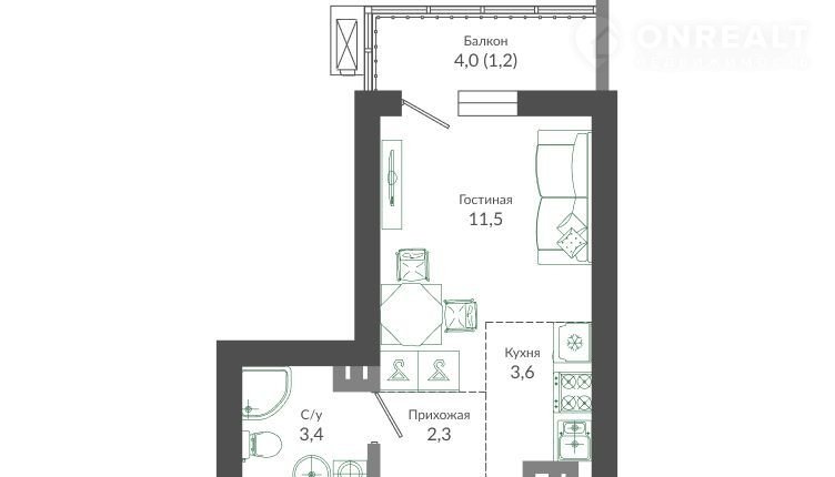 Жилая площадь 11.5 м2