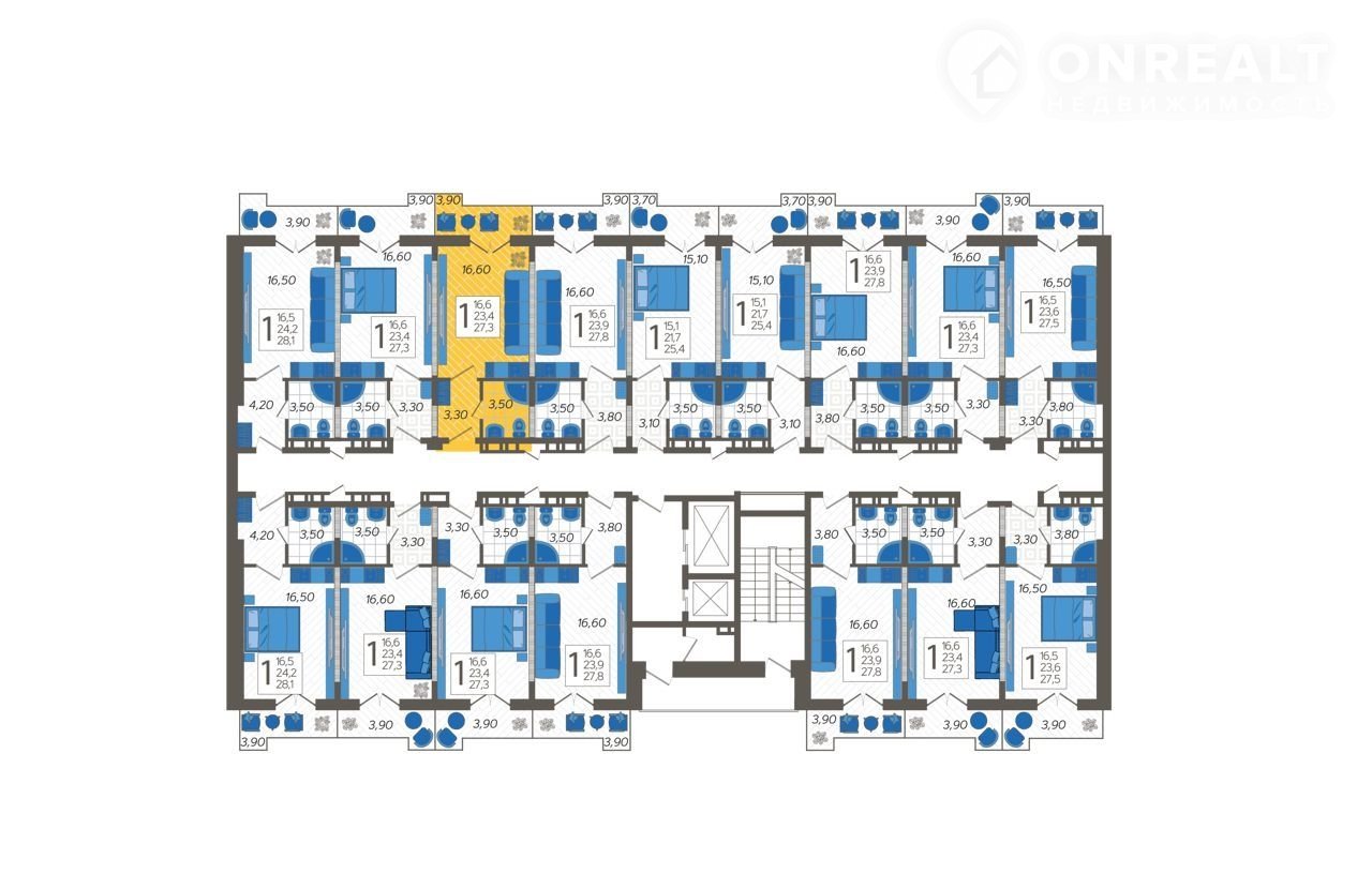 Продается  студия с улучшенной готовой отделкой  в доме (Литер 4), срок сдачи : 1 кв. 2025, общей площадью 24.6 кв.м., на 3 этаже.