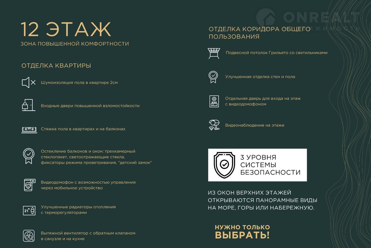 7 домов комфорт-класса по 12 этажей в самом зеленом районе Сочи. Тут идеально чистый воздух, рядом плантация пробкового дуба и Тисо-самшитовая роща, объект наследия ЮНЕСКО. Насладитесь потрясающими видами благодаря увеличенным окнам.