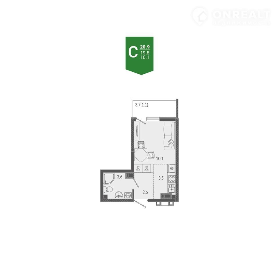 Общая площадь 20.9 м2