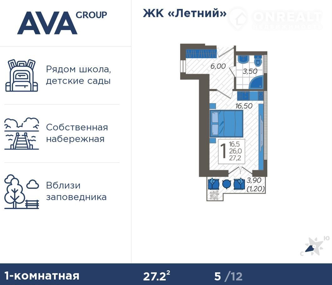 Общая площадь 27.2 м2