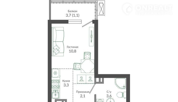 Общая площадь 20.9 м2