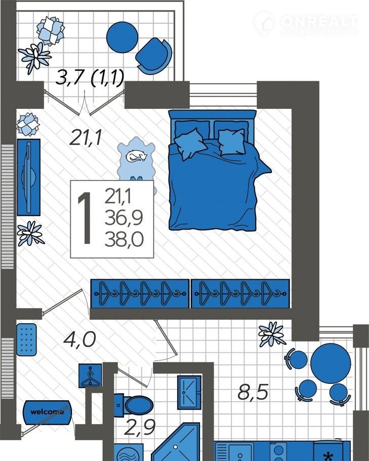 Общая площадь 37.8 м2