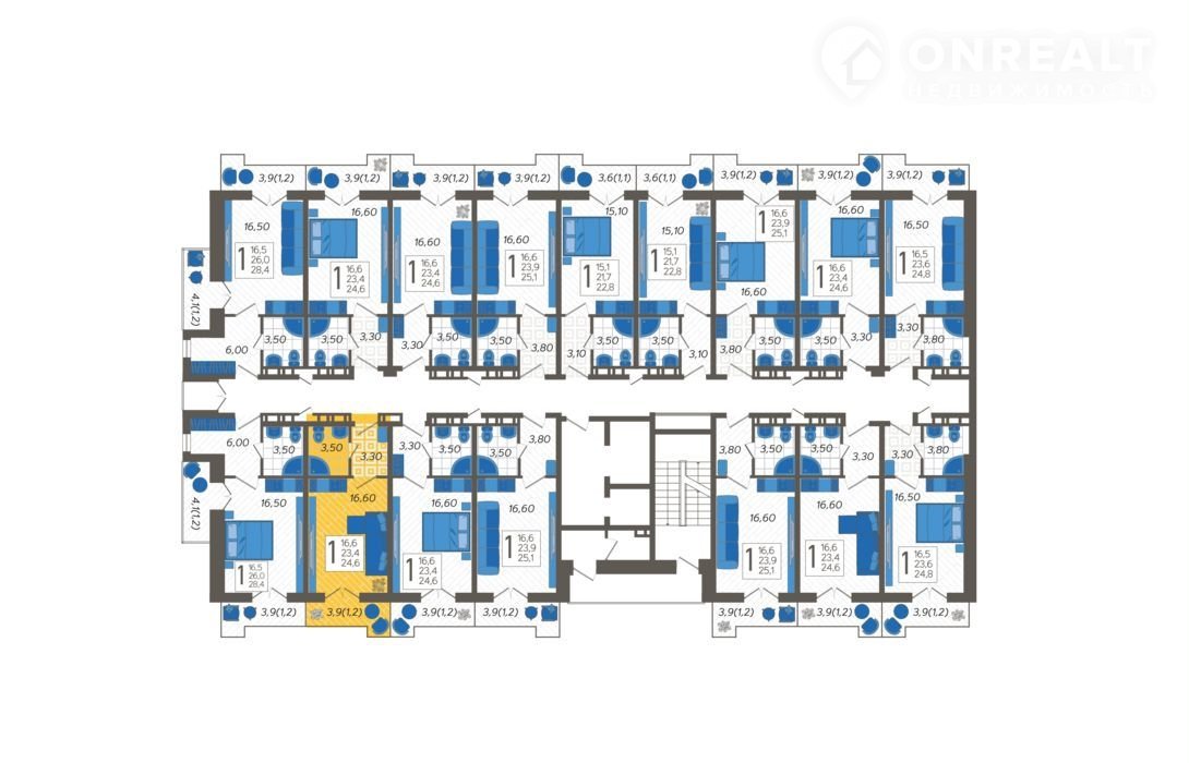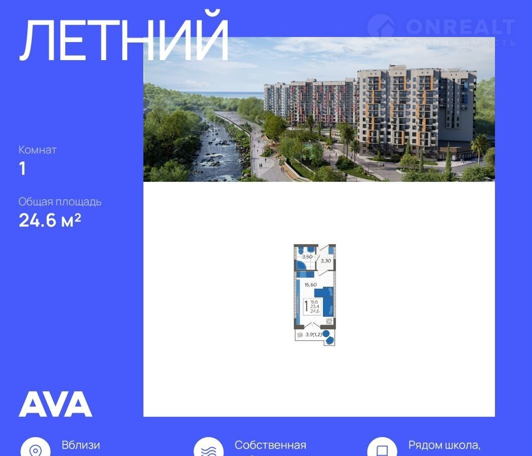 1-комнатная квартира, 24.6 м2, этаж 9 / 12, на продажу в Сочи