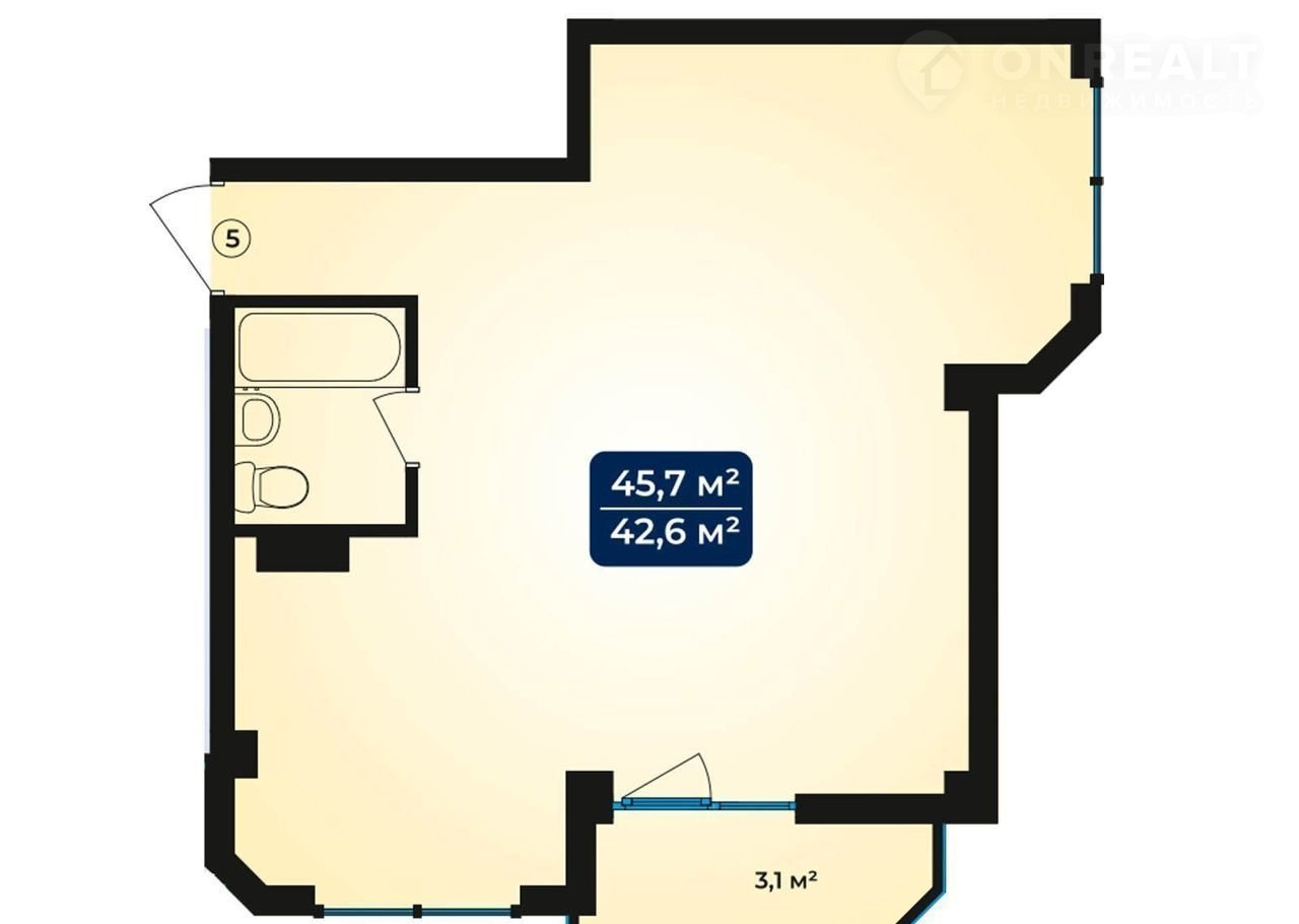 Общая площадь 45.7 м2