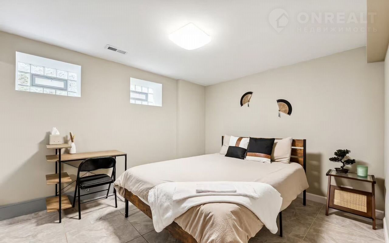 Квартира расположена на цокольном этаже, что обеспечивает дополнительное спокойствие и уединение. Дизайн в стиле Jараndi — это идеальное сочетание минимализма и уюта, где естественный свет заливает комнату, создавая мягкую и расслабляющую атмосферу. Просторная спальня с кроватью размера Quееn и современными деталями интерьера подойдёт как для отдыха, так и для работы.