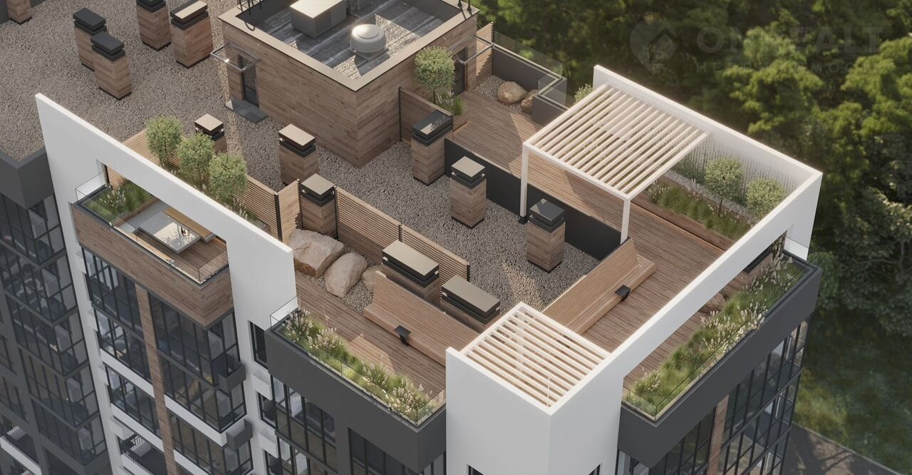 · видовые зелёные террасы на крышах домов