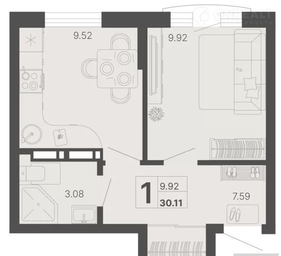 Общая площадь 30.1 м2
