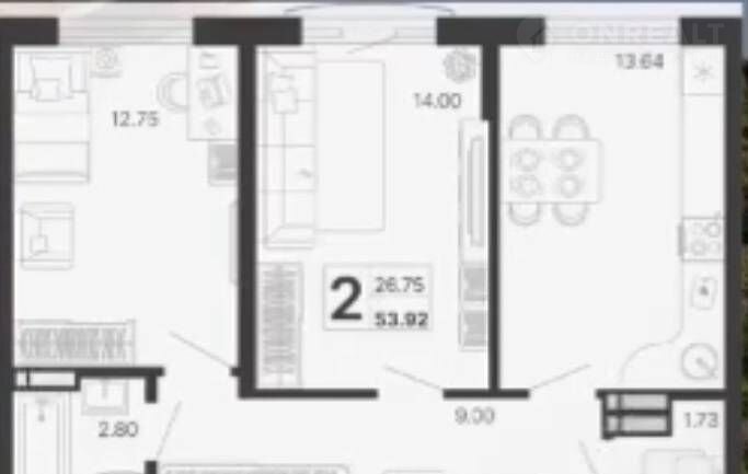 Количество комнат 2