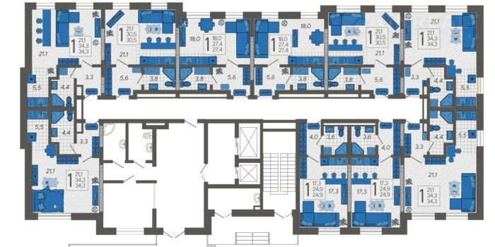 Общая площадь 34.3 м2