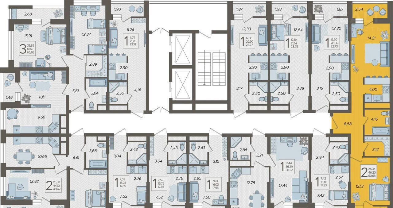 2-комнатная квартира, 52.2 м2, этаж 16 / 19, на продажу в Сочи, Ясногорская улица, 16/2к1