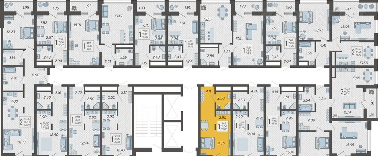 Общая площадь 22.9 м2