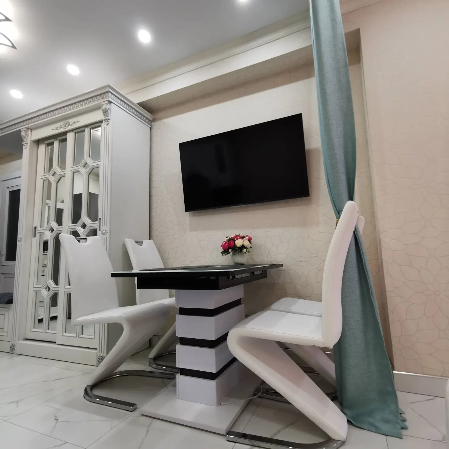 Фотографии и видео соответствуют реальности , КВАРТИРА В ЖИВУЮ НАМНОГО КРАСИВЕЕ, и аура шикарная! Меняя цвет штор, меняется весь облик квартиры!