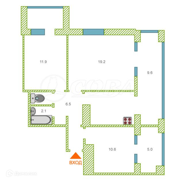 Общая площадь 68.7 м2