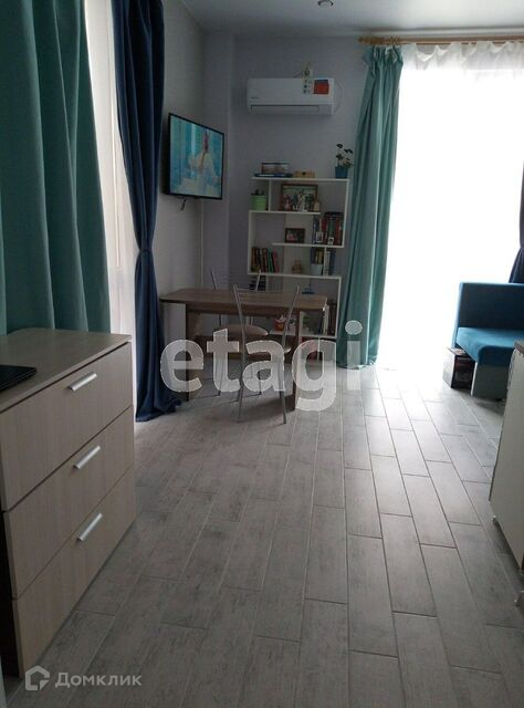 Продаётся студия 24 кв м. Первый этаж, угловая квартира, есть возможность пристроить балкон. Панорамные окна, свежий ремонт, новая мебель. В санузле водонагреватель, полноценная ванна. Тёплый пол по всей площади квартиры, кондиционер, установлен стабилизатор напряжения. В шаговой доступности автобусные остановки, поликлиника, детские сады и школа, рынок, много магазинов, парикмахерские, кафе.