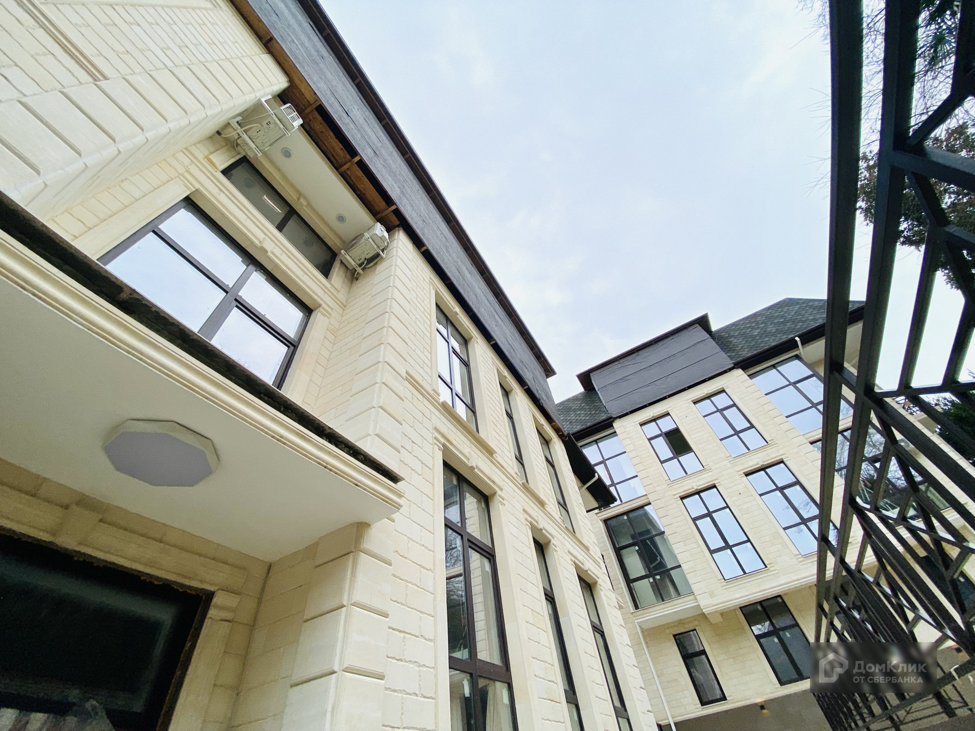 Внешняя отделка здания выполнена декоративным камнем.