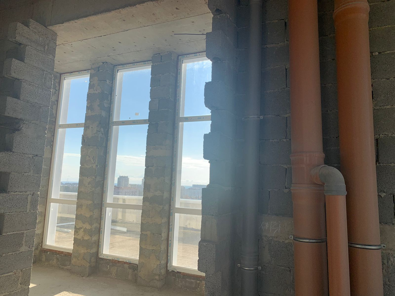 Отделка черновая. 2 полноценных этажа и своя огромная терраса на крыше.