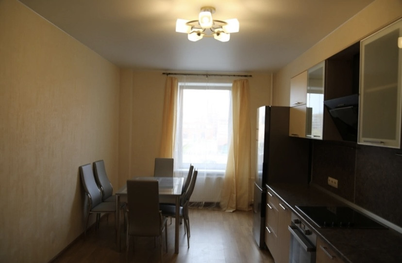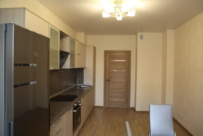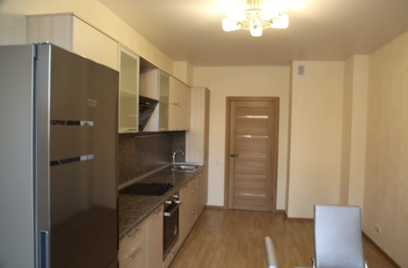 Квартира готова к проживанию. В кухне всё есть, комната без мебели.