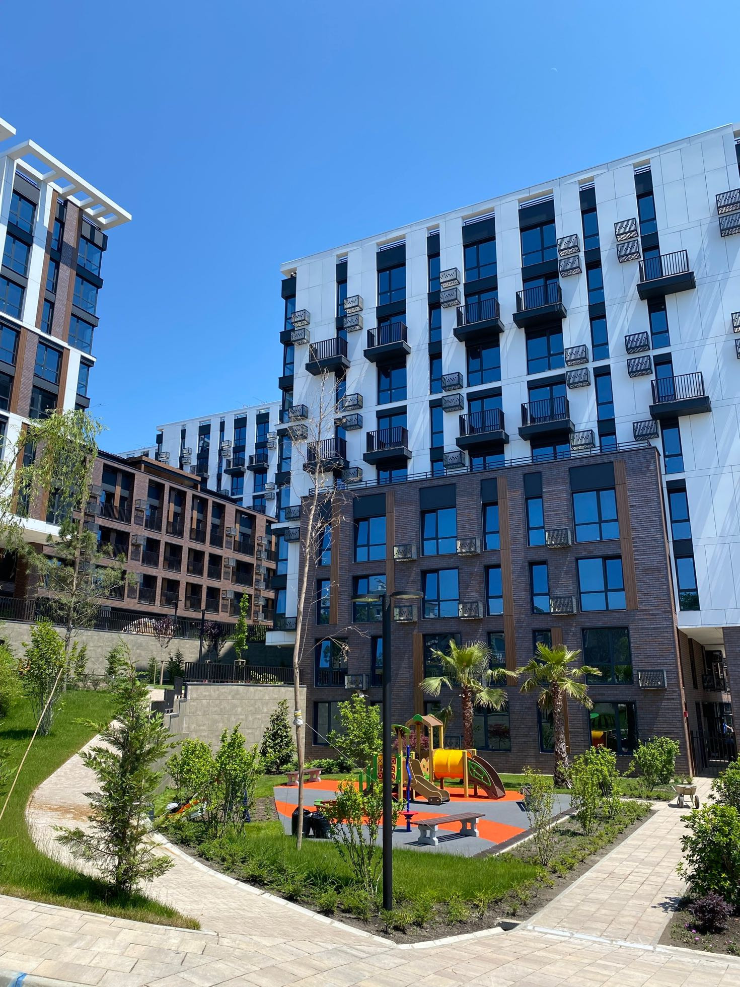 Комплекс строился по ФЗ, все коммуникации центральные. На закрытой территории ландшафтный дизайн, детские и спортивные площадки, паркинг, коммерция.