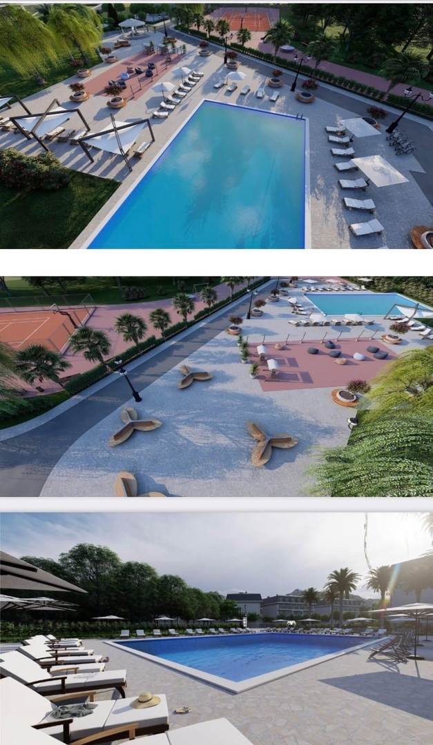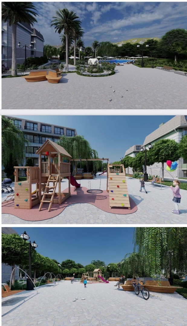 НА ТЕРРИТОРИИ: ландшафтный дизайн, SPA-комплекс, два больших бассейна, спортзал, мини футбольное поле, фонтан, лаундж-зоны для взрослых и детей, большая детская площадка, детская игровая комната с аниматорами-педагогами со знанием английского языка.