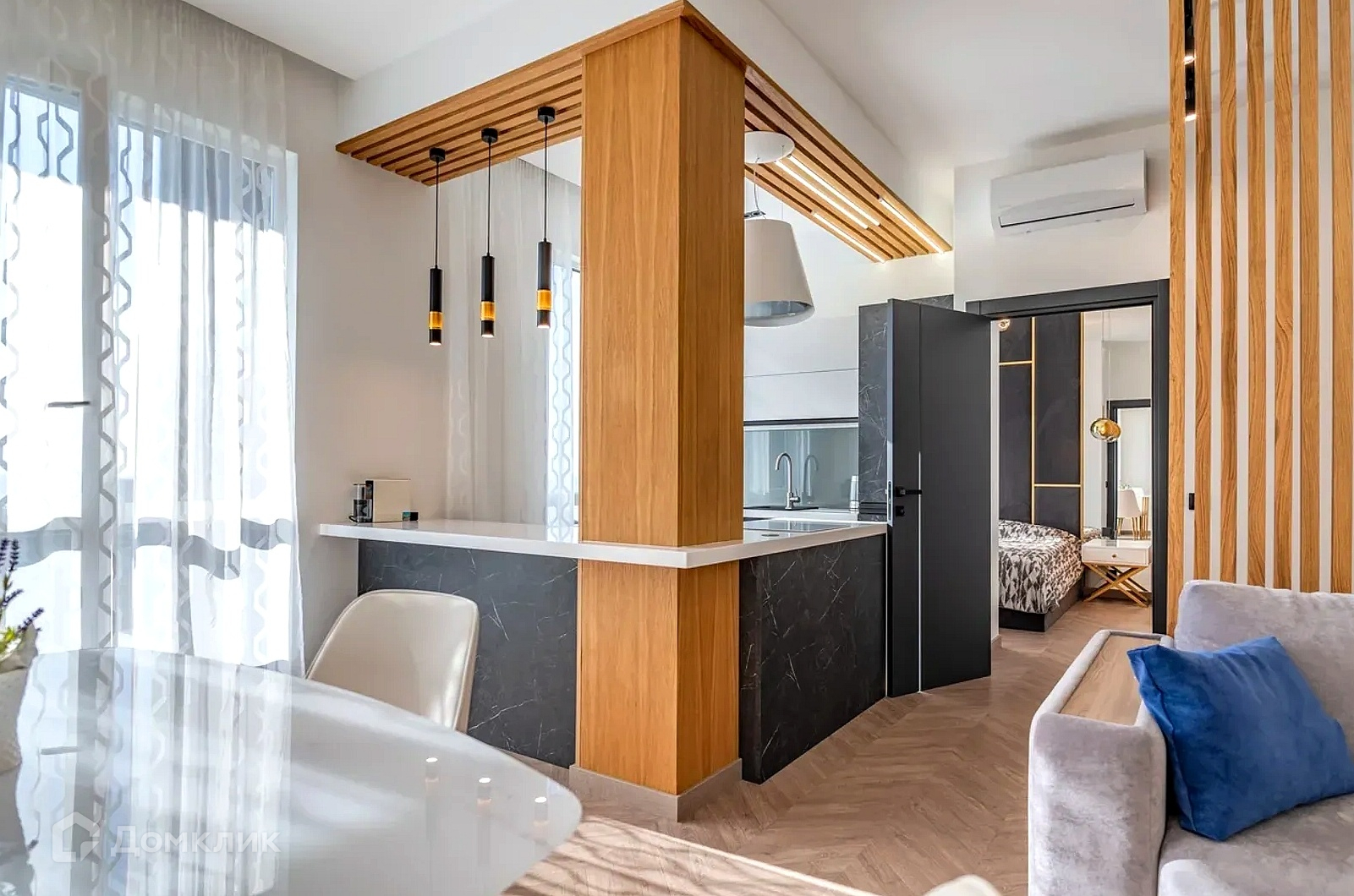 Арт. 61168797 Двух комнатная квартира с новейшим дизайнерским ремонтом, тремя световыми точками и прямым видом на море в ЖК бизнес-класса «Касабланка».