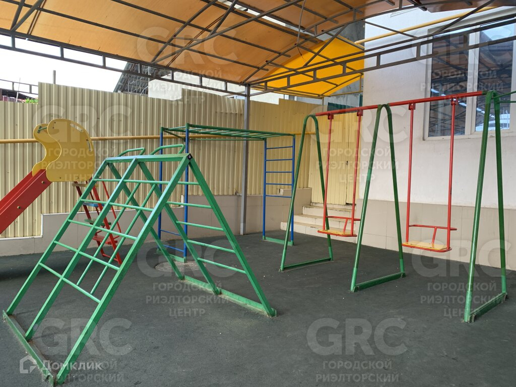 Во дворе имеется детская площадка под навесом, территория закрытая, по периметру высажены декоративные растения.