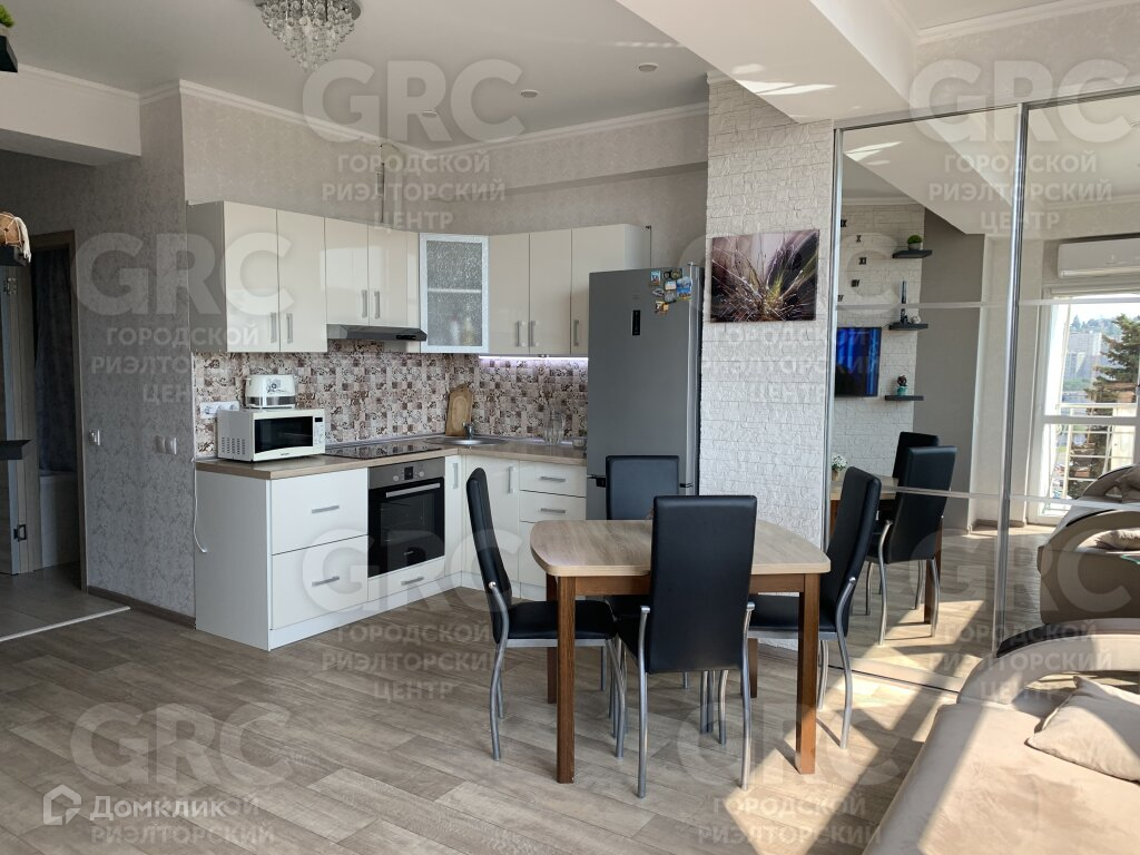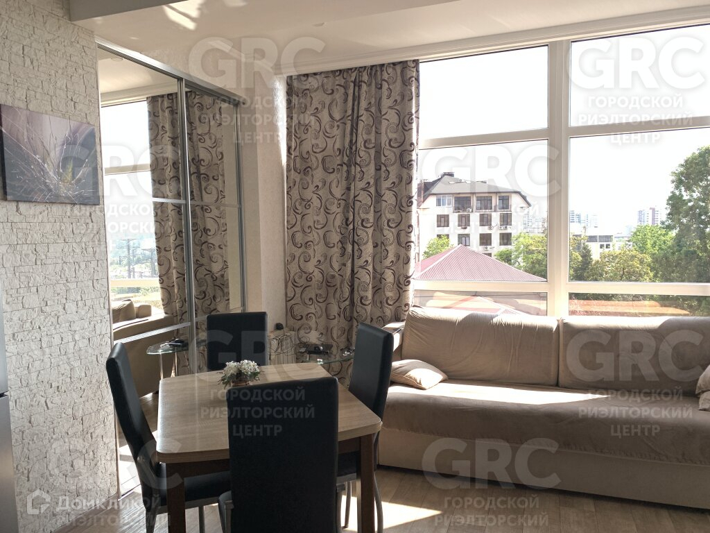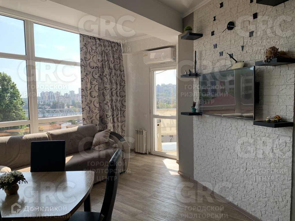 В квартире сделан хороший современный ремонт. Из окна открывается панорамный вид на город и набережную р. Сочи.
