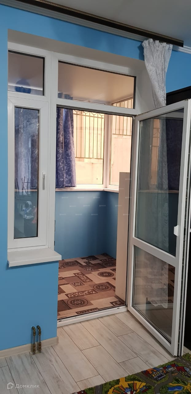 В квартире три световые точки и застекленный балкон. Спланирована в большую студию.