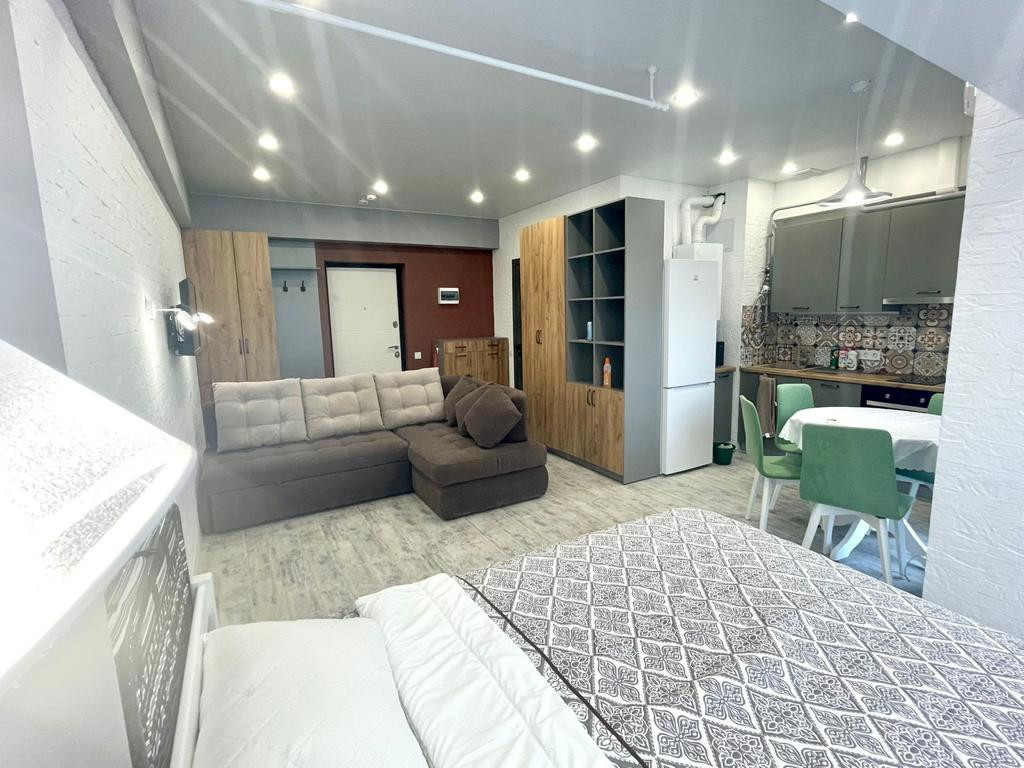 Квартира имеет две световые точки. Площадь 28,1 м2 без учета балкона. Пространство эргономично распланирована на зону отдыха и кухонную зону.