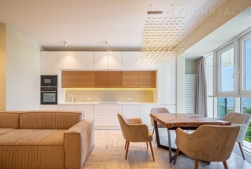 Продаю квартиру с новым, дизайнерским, ремонтом с видом на море в доме элит класса. До моря 5 минут пешком. Квартира распланирована в три отдельных комнаты, кухня-гостиная с видом на море. Квартира полностью укомплектована техникой и мебелью. Все новое, делалось для себя. На кухне установлен дорогой кухонный гарнитур с встроенной техникой (варочная панель, духовой шкаф, вытяжка, посудомоечная машина). Установлена сплит система. Вся сантехника новая. Теплый пол.  Дом с закрытой территорией, круглосуточной охраной и видео наблюдением. В доме есть подземный паркинг, закрытая парковка, детская площадка. Более подробную информацию по телефону.