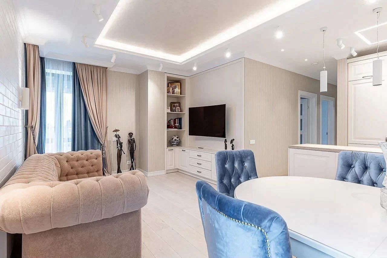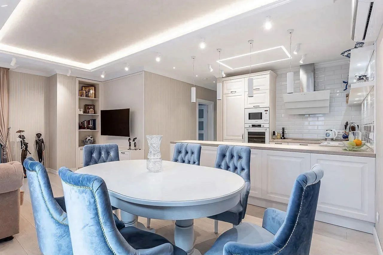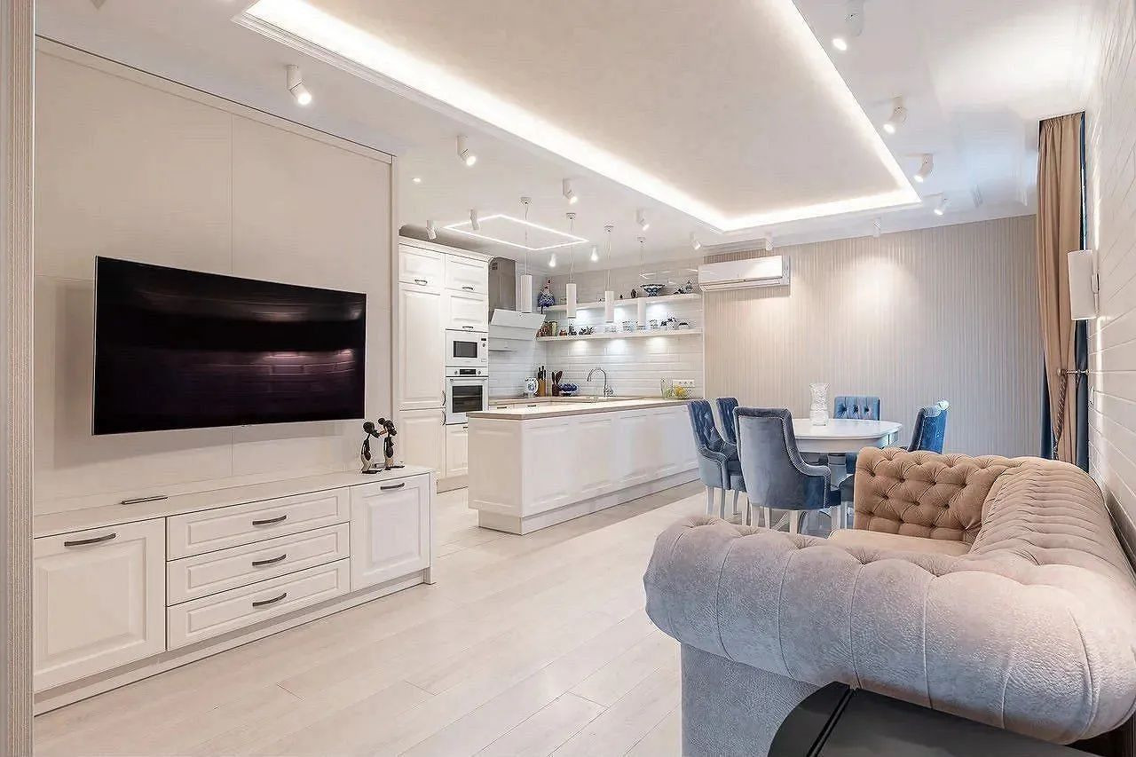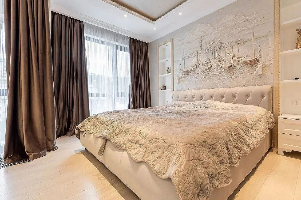 О самой квартире: кто знаком с планировками в комплексе , мы объединили две квартиры 88 кв м и 37 кв м. Общая площадь составила 125 кв м с балконами, их в квартире два. Над проектом работали лучшие дизайнеры Москвы, все продумано до мелочей, лучшие материалы и бренды.
