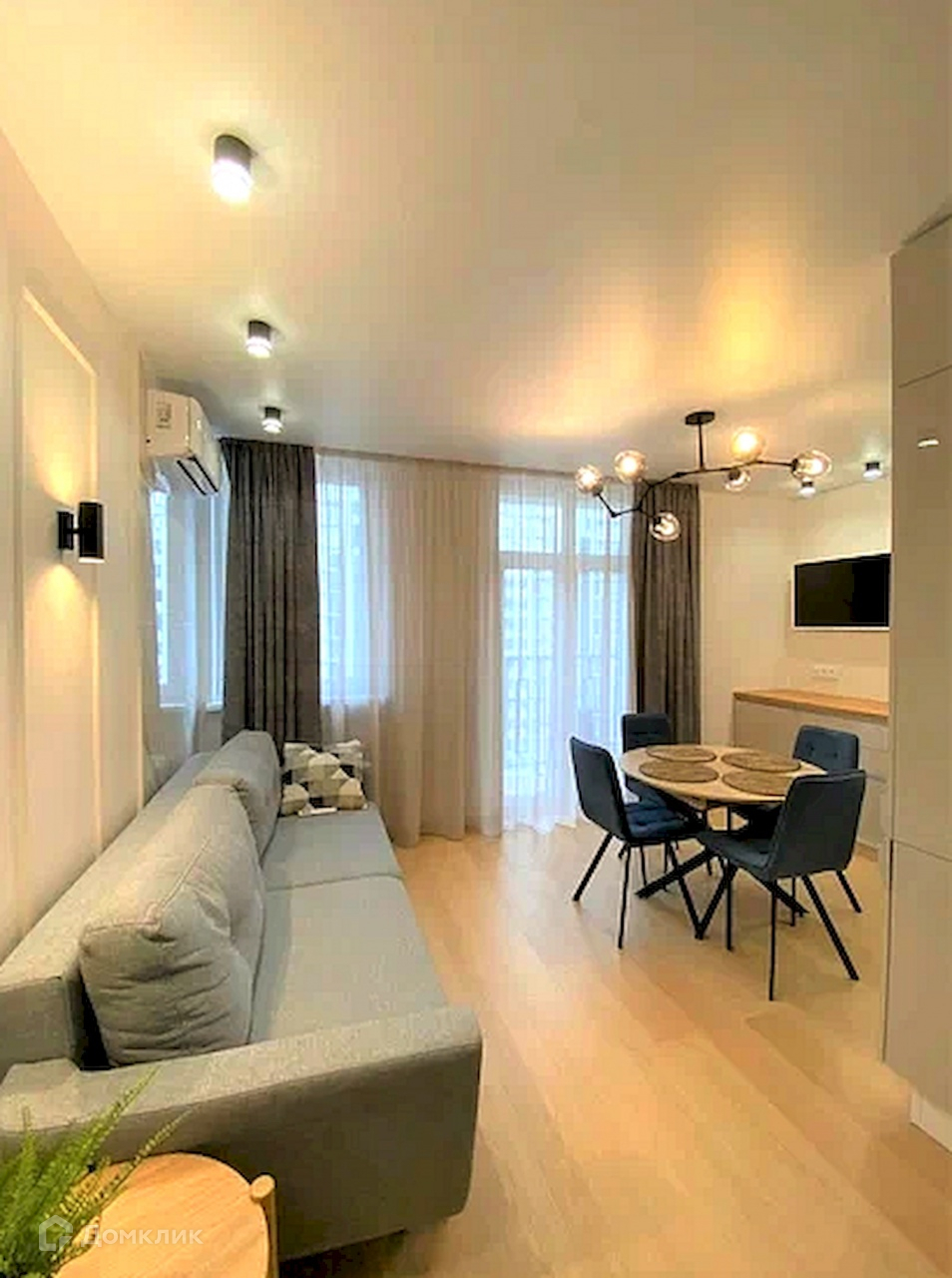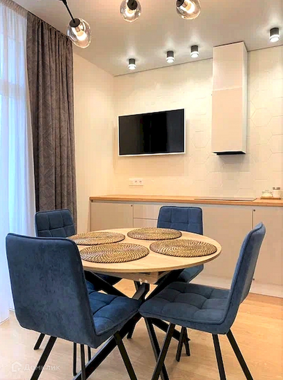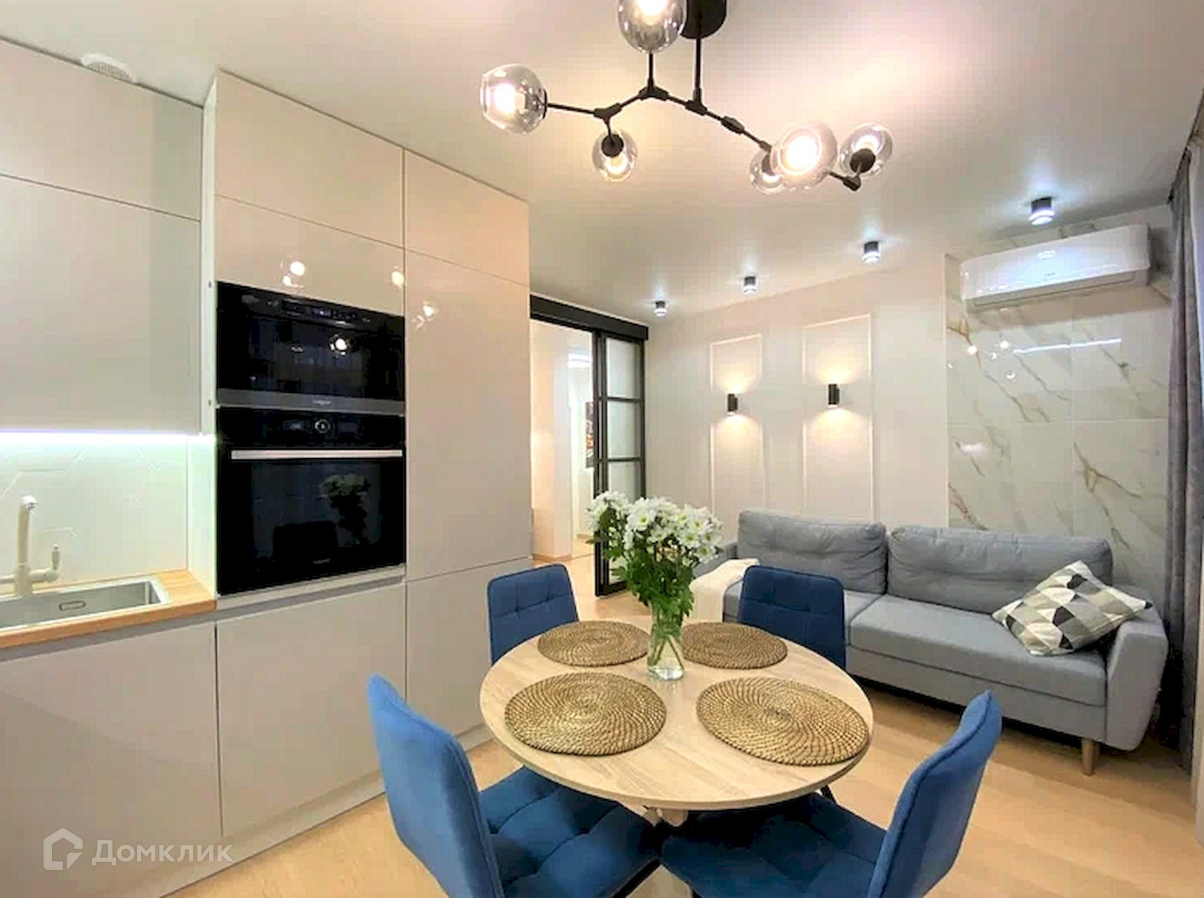 из них просторная кухня гостиная с продуманной зоной готовки и обеденной зоной,