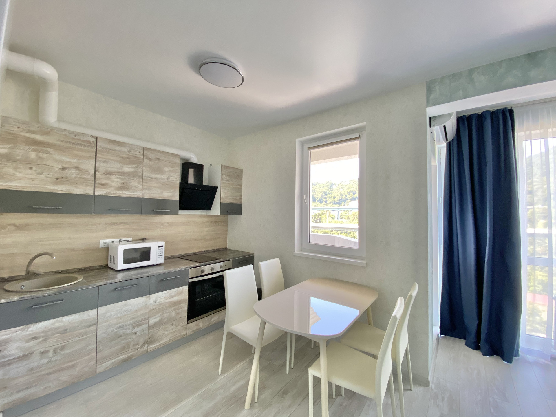 ЖК Мацеста парк. Студия с видом на горы. В квартире панорамное остекление, есть балкон. Вся мебель и техника остаётся. Статус квартира. Дом строился по ФЗ-214. У дома закрытая территория с парковкой, детской площадкой. Напротив дома благоустроенная набережная реки Мацеста.