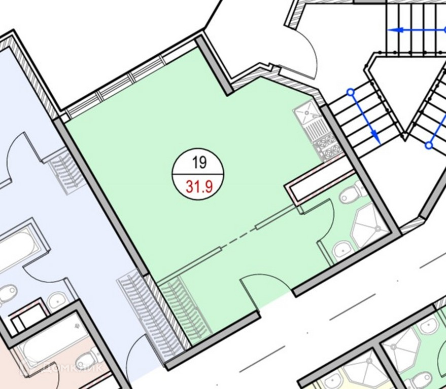Общая площадь 31.3 м2
