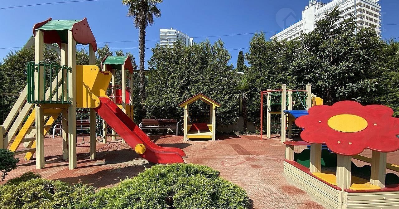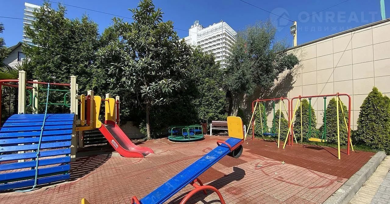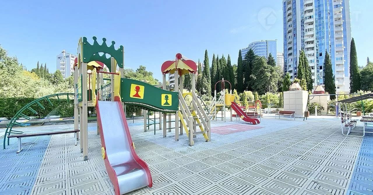 Дом с закрытой территорией, под охраной и видеонаблюдением. Во дворе есть детская площадка и зоны для отдыха. Также в комплексе есть подземный паркинг. Дом находится в микрорайоне Светлана, в так называемом "Золотом треугольнике" Сочи. Здесь в пешей доступности все основные достопримечательности города. Морской вокзал, парк Дендрарий, Зимний театр и др. Расстояние до моря не более 3 минут пешком.