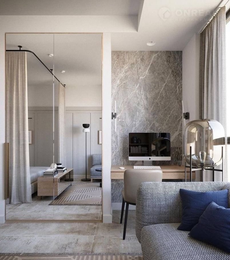 Распланированная студия с выделенной спальней,  эксклюзивный дизайнерский ремонт.