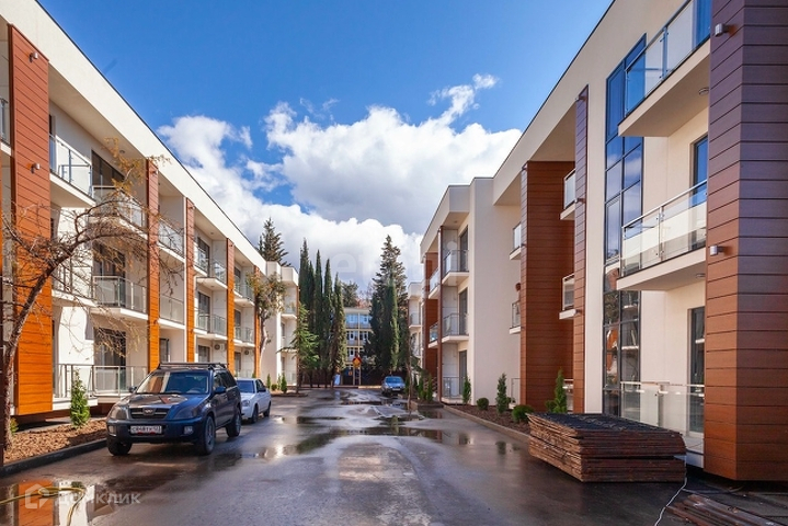 Комплекс состоит из 4 корпусов по 3 жилых этажа. К продаже представлены квартиры площадью от 20 до 48.3 кв.м свободной планировки. Высота потолков - 2,8 м. Все квартиры оборудованы двойными стеклопакетами в пол, балконами с перилами из каленого стекла.